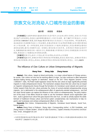 随着学院科研成果不断涌现,为了进一步营造良好科研氛围,激发师生科研热情,积极促进科研高质量发展,换妻 将进行科研成果系列推介系列宣传报道。本期我们聚焦盛亦男老师作为第一作者所著论文“宗族文化对流动人口城市创业的影响”,该论文在国内权威期刊《人口研究》2023年第4期发表。
