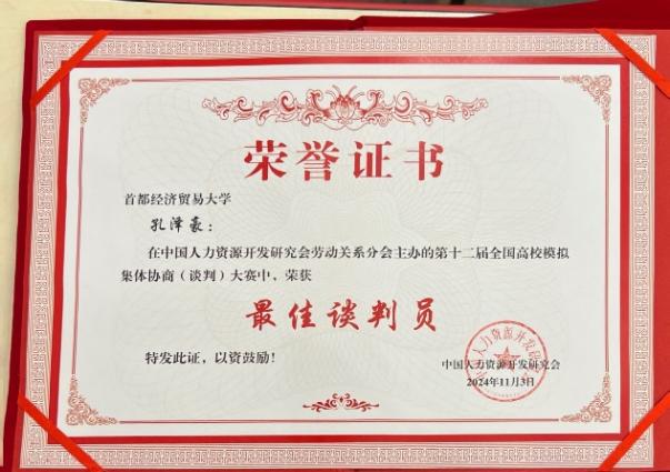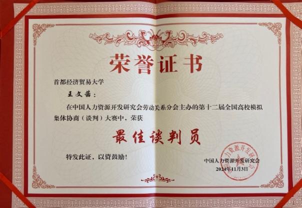 此次大赛,不仅为我校学子提供了宝贵的实践平台,更在全国各高校产生了深远影响,激发了同学们对劳动关系管理、劳动法及协商谈判技巧等知识的浓厚兴趣,促进了理论与实践的深度融合。大赛的成功举办,也进一步推动了高校、企业和社会各界的交流与合作。期待未来能有更多这样的平台,让同学们在比赛中成长,在交流中进步,为社会培养更多具备实践能力和创新精神的劳动关系专业人才,推动以人为本、合作共赢为主旨的集体协商和劳动者民主管理新机制更加完善,为构建新时代中国特色和谐劳动关系作出更大贡献。