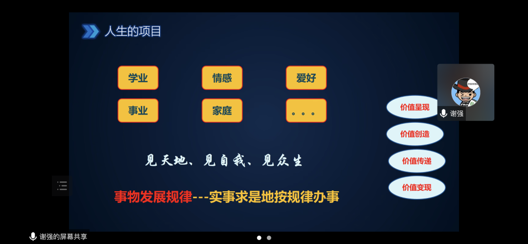 其后,通过一价值链和附加值为横纵坐标的微笑曲线,谢强老师进行项目定位,明确了项目推进流程中各部分的要求层级。以此引导同学们在对问题的聚焦、对标、评价定义和迭代这一流程中产生项目创业与双创思维,应用到双创教育与项目实践当中。