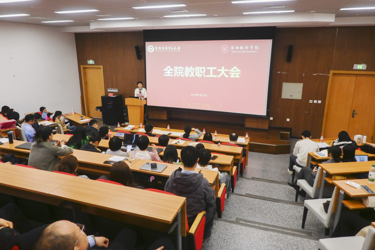 何勤作总结讲话。她对全院教职工在2024年的辛勤付出表示衷心感谢。她指出,2025年是学院高质量发展关键年,应当锚定“建设新时代中国特色社会主义劳动科学和人口科学”目标任务,聚焦“一流学科建设,劳经何为”的主线,全力推进一流学科建设。围绕制定学院发展蓝图、完成“双一流”建设目标任务、人才培养数智化转型升级、筹备70周年院庆“四件大事”,实施人才培养、学科突破、科研登峰、师资建设、开放办学“五大工程”,强化党建、制度、人才三项保障,确保“十四五”圆满收官、“十五五”科学布局。