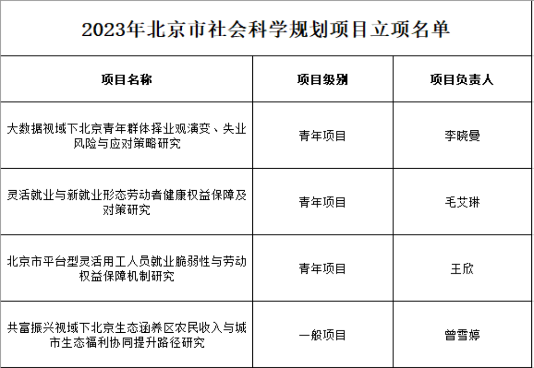 12月4日,北京市社科联、北京市社科规划办公布了2023年北京市社会科学基金年度项目立项名单。换妻 共有5个项目获得北京市社科基金项目立项,其中决策咨询项目1项、规划项目4项。具体立项名单如下:
