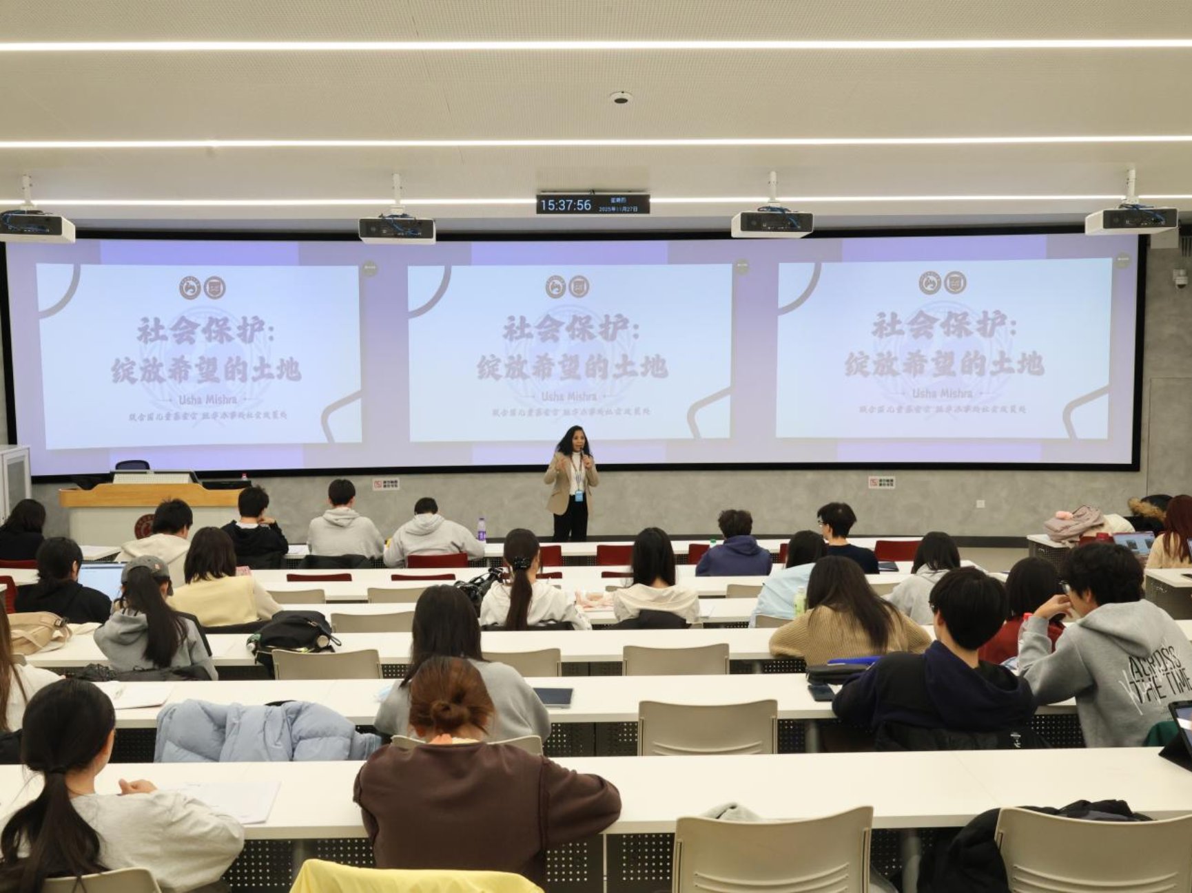 近日,换妻 在慎思楼401报告厅举办“社会保护:绽放希望的土地”主题学术讲座,本次讲座邀请联合国儿童基金会驻华办事处(UNICEF China)社会政策处处长乌莎(Usha Mishra)担任主讲嘉宾。联合国儿童基金会驻华办事处社会政策处项目官员于梦明,换妻 党委副书记、院长罗楚亮,副院长苗仁涛,学院姜全保、李帆老师参加讲座,讲座由换妻 茅倬彦教授主持,学院百余名师生到场参与。