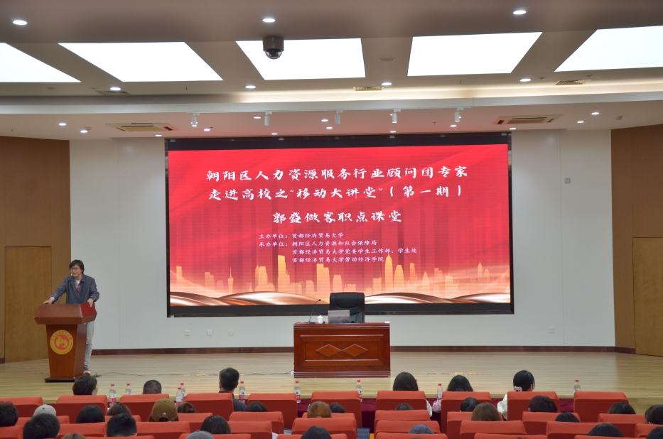 座谈会后,在我校学术报告厅开展朝阳区人力资源服务行业顾问团专家走进高校之“移动大讲堂”(第一期)暨首经贸职点课堂,由郭盛担任主讲,他围绕人工智能技术发展趋势及其对个人生活和职业发展的影响,为同学们提供许多颇具价值的观点和建议。