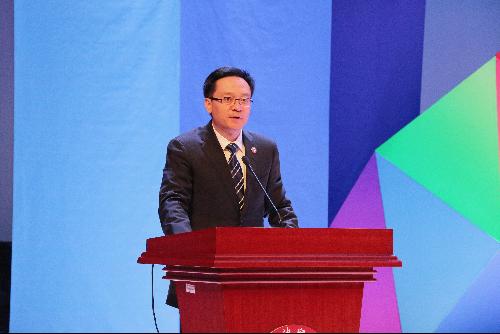 中国人力资源开发研究会副会长杨河清教授在开幕式上致辞。他代表本次大赛主办单位全国大学生人力资源管理知识技能竞赛理事会全体理事们对参加本次大赛的500余名师生的到来表示热烈欢迎。杨河清指出,习近平总书记在十九大报告中强调“新时代要有新思想、新气象、新作为”。全国人力资源管理知识技能竞赛的举办初衷便是希望通过大赛营造人力资源管理课堂教学和实践教学的新气象,以大赛为契机创新教学环境,在实践中考验学生的理论功底和实践能力,为学科建设和行业发展打造后备队伍,实现新时代下的新作为。他呼吁与会同仁们要将“人力资源管理专业教学”当成一项伟大事业,携手绘专业发展和学科建设的美好未来。