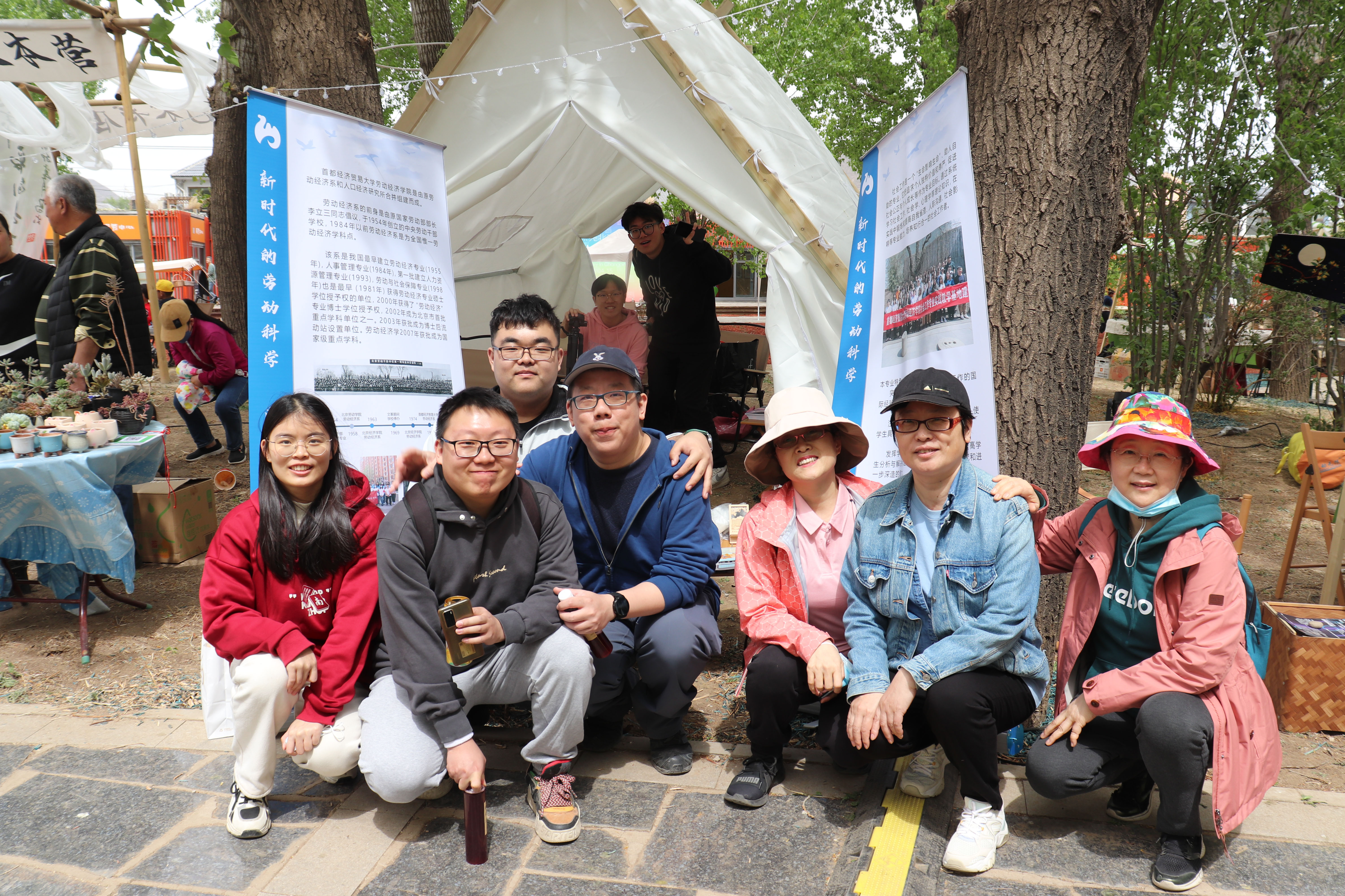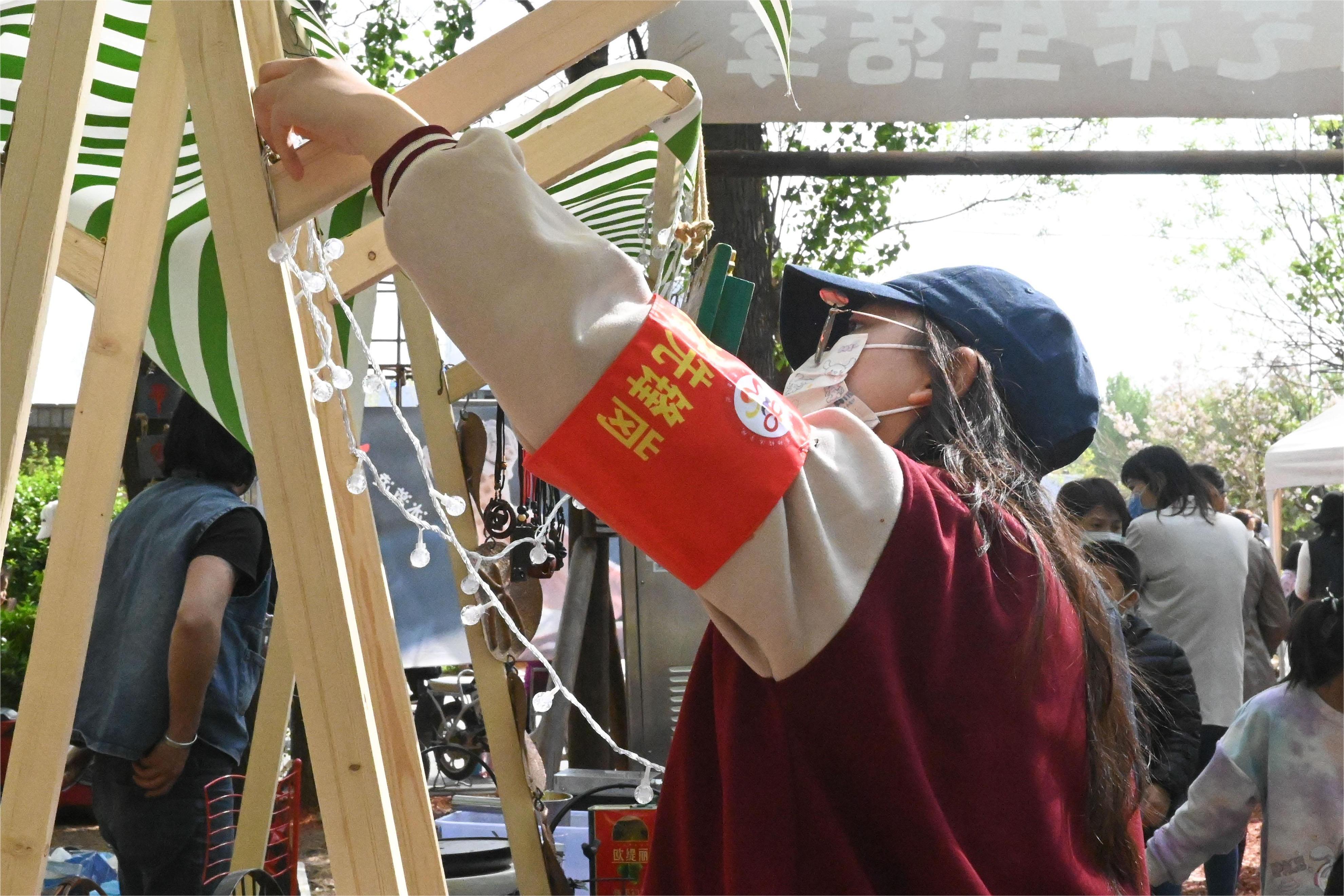 下苑村艺术市集上凝聚了52个摊位,其中80%是兴寿镇的驻村艺术家、设计师和手作人,用果蔬厨余堆肥制作成“颗粒花肥”、用虫咬和过熟的草莓染成的粉丝巾等,他们带着原创手作的艺术品、美食、服装、玩具、工艺品等,吸引了众多游客。换妻 志愿者搭建起劳经专题摊位,通过一件件文创,向游客普及红色劳动历史,介绍专业社工在下苑村多元治理中发挥到作用,让劳动学科融入市集。同时劳经志愿者的身影出现在市集到各个角落,布置摊位,引导游客,悬挂夜灯,疏导交通,帮助行动不便的老人度过坑洼路段,协助市集负责人搬运场地物资。每一位志愿者犹如一个齿轮,通过自己的劳动助力市集整体运转有序。