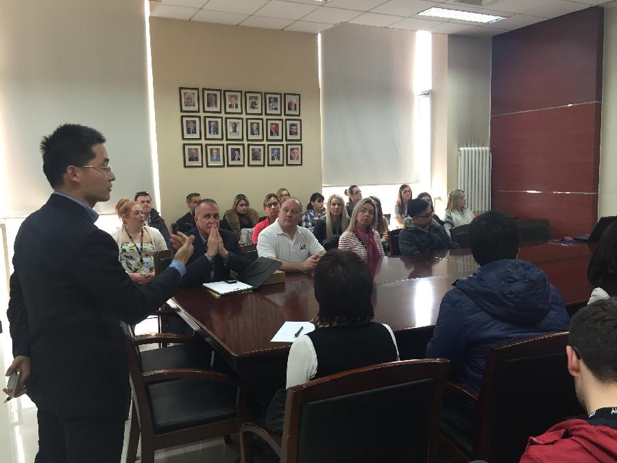 爱尔兰阿斯隆理工学院商学院师生于3月15日来我院进行交流参观。上午十点,我院冯喜良院长、范围副院长、阿斯隆交流项目负责人魏华颖老师、国际项目负责人李楠老师以及往届参与阿斯隆理工学院交换项目的我院学生,在博纳楼229欢迎来自友院的二十九位同学和三位老师。欢迎会由魏华颖老师主持,首先,冯院长代表换妻 全体师生对阿斯隆理工师生表示热烈欢迎,同时对两院间的际交流项目表示充分肯定。范围副院长在欢迎会上向商学院师生总体介绍了我校历史和整体情况。
