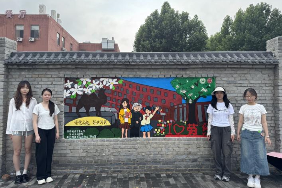 绘制现场,同学们以墙为纸、以彩为墨,用青年学子的朝气蓬勃勾勒出“崇德尚能 经世济民”的校训精神,描绘出社区生活的幸福美好,更彰显出“以劳为道 经世致用”的劳动风貌,绘就出丰富多彩而又饱含深意的创意墙绘,不仅以艺术文化赋能校社环境,更诠释出区域化团建“共建、共享、共融”的治理理念。