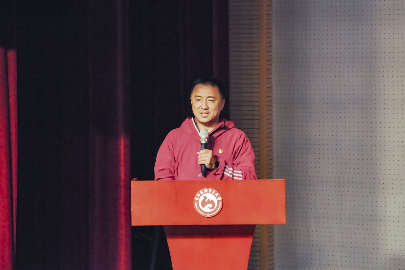 党委副书记孙庆福老师在典礼上致辞,他以在操场散步时看到平行的跑道,想象平行世界,追忆自己的大学时光为引,讲述了大学生活应该如何度过。借此,他对21级劳经新生表达真挚的期望:希望新生们从学长学姐的劳经故事中,汲取学习和工作方面的经验,树立美好的大学目标,争做出彩劳经人。同时对大二大三同学们无私的分享表示感谢,希望大家在未来精彩永不落幕,取得更高的成就。