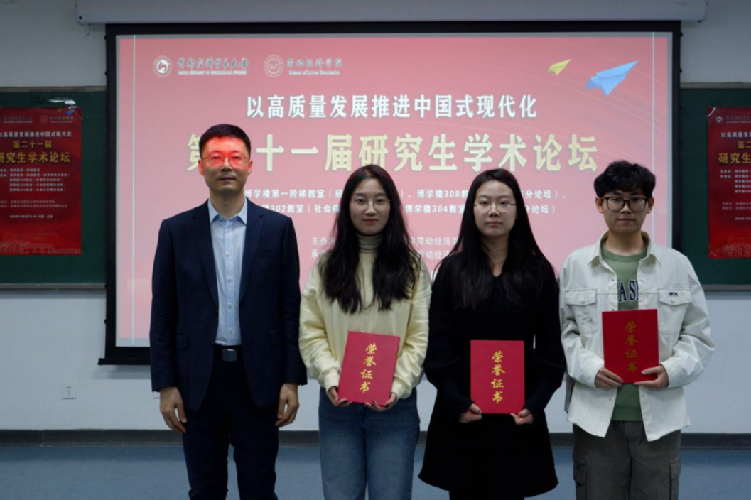 12月4日,换妻 在博学楼举办第二十一届研究生学术论坛,论坛主题为“以高质量发展推进中国式现代化”,研究生院副院长关鑫教授、换妻 罗楚亮教授、换妻 副院长苗仁涛教授、人力资源管理系党支部书记毛宇飞副教授、劳动关系系丁述磊副教授出席论坛,150余位研究生参加本次论坛。