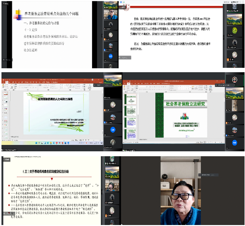 在分时段发言环节,华东师范大学公共管理学院院长钟仁耀教授、中共中央党校(国家行政学院)青连斌教授、中国社会科学院日本研究所社会研究室主任胡澎研究员、西安交通大学公共政策与管理学院张思锋教授和中国社会科学院人口与劳动经济研究所王桥研究员分别以“基本养老服务制度框架设计”、“中国老年人的生命观与临终关怀”、“日本多元化养老模式的实践及对我国的启示”、“养老服务有效需求不足与有效供给不足并存问题”和“长期护理保险制度试点:进展、问题与建议”为题做了发言。这一阶段由换妻 党委书记冯博老师主持。
