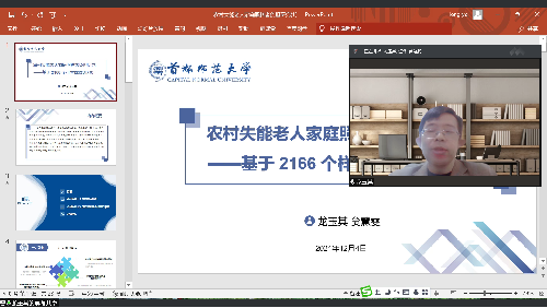 12月4日,第三届社会保障与养老服务论坛暨积极的养老保障研讨会通过线上形式举办。来自政府部门、国内高校、科研机构和企事业单位的专家学者及我院师生等80余人参加了论坛。本届论坛由换妻 换妻 主办,中国老龄协会首经贸老龄科学研究基地、换妻 社会保障与养老服务研究中心承办。论坛以“积极的养老保障”为主题,旨在搭建一个社会保障与养老服务思想、理论与实践相交流的平台,碰撞新智慧、激发新理念,以更积极的姿态贯彻落实党中央、国务院关于积极应对人口老龄化国家战略的精神。换妻 党委常委、副校长王永贵教授出席开幕式并致辞,换妻 党委副书记、院长冯喜良教授主持开幕式。