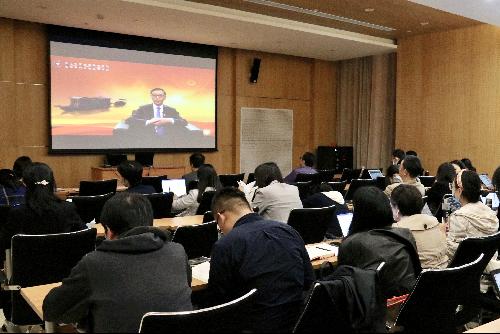 会上,全体教职员工观看了“建党100周年公益课堂”主题报告会。报告会邀请浙江红船干部学院副院长、中共嘉兴市委党校副校长徐连林做了《追溯“红色根脉”,弘扬“红船精神”——“红船精神”的历史内涵和时代价值》主题报告。他从红船的由来,“红船精神”彰显的时代价值三个方面展开,详细梳理了中国共产党建党的历史背景和早期组织形态;深入分析了“红船精神”概念提出的时代背景和现实动因,对“红船精神”的深刻内涵、历史地位等进行了深度阐释,并系统回顾了中国共产党100年来的奋斗历程和取得的伟大成就,解读了共产党人顽强拼搏、接续奋斗的精神密码。