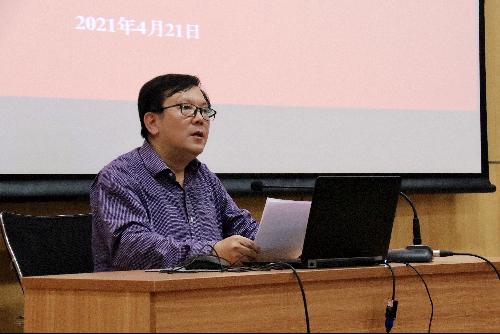 王明会围绕“为什么学”“学什么”“怎么学”和“如何学得好”四个方面对学院党史学习教育活动进行了全面部署。他提到,开展党史学习教育是牢记初心使命、推进中华民族伟大复兴的必然要求;是坚定信仰信念、在新时代坚持和发展中国特色社会主义的必然要求;是推进党的自我革命、永葆党的生机活力的必然要求。开展党史学习教育,有利于从百年党史中汲取经验智慧和前进力量,全面加快推进学校学院高质量发展。