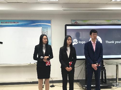 12日早八点,选手们按照抽签顺序在行知楼104教室开始了精彩的答辩环节。选手们都力争把本组的特色展示给评委们,有的小组通过C语言的运用使资金的计算更方便,有的则是利用丰富的知识和经验从战略上先人一步。评委们在认真倾听之后也向选手们提出了知识及策略等方面针对性十足的问题,与选手们进行了交流。