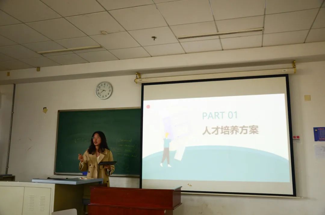 人才培养方案是培养人才、组织教学活动、进行教学管理工作的纲领性文件,是全面贯彻于大学本科阶段的重要文件,其内容包含培养目标、毕业要求、培养特色、核心课程与学分课时教学安排。各班班助为新生们讲解了各专业人才培养方案,并介绍了人才培养方案的查找方式。