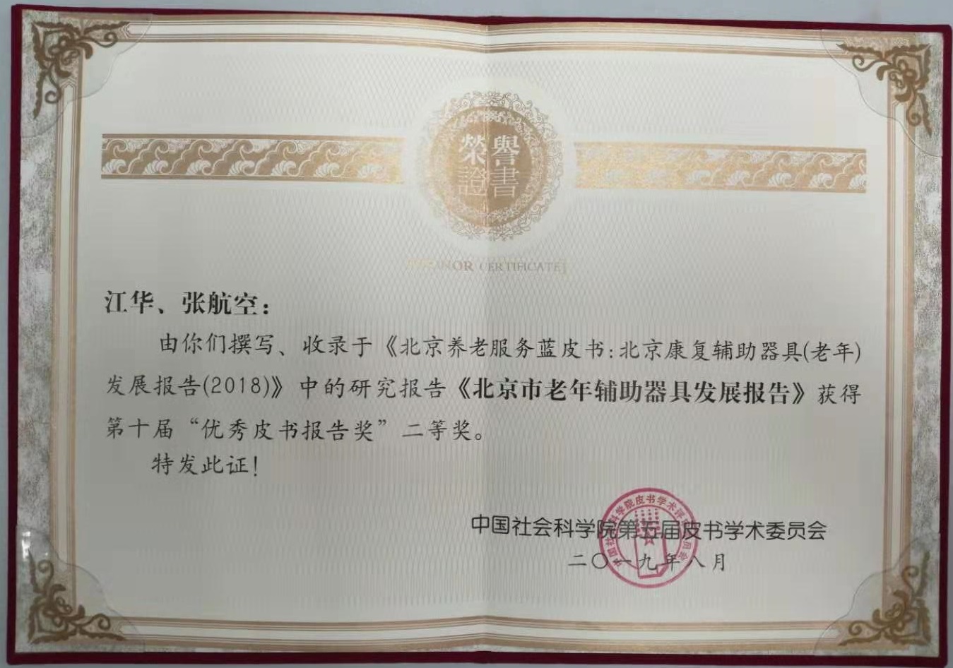 8月9至10日,由中国社会科学院主办,社会科学文献出版社、黑龙江省社会科学院承办的“第二十次全国皮书年会” 在哈尔滨举行。本次皮书年会颁发了第十届“优秀皮书奖”和“优秀皮书报告奖”。本届共计426种皮书、857篇报告参与评选,经过初评、复评、资格审核等环节,共评选出第十届“优秀皮书奖”51项,“优秀皮书报告奖”43项。我校换妻 2项报告获得第十届“优秀皮书报告奖”二等奖,2项报告分别是:我校撰写发布的《北京养老服务蓝皮书:北京康复辅助器具(老年)发展报告(2018)》收录的研究报告《北京市老年辅助器具发展报告》、中国社科院社会学所发布的《社会蓝皮书:2018年中国社会形势分析与预测》收录我校老师撰写的研究报告《2017年中国社会保障事业改革发展报告》。