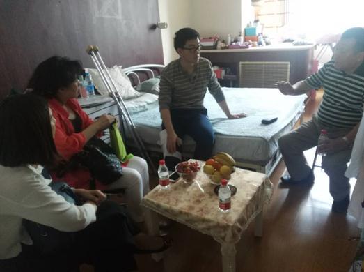 王明会书记详细询问了张成刚老师的身体治疗情况,嘱咐他保重身体,早日康复。吴博棣老师代表劳经学院的其他老师也对张老师表示问侯,预祝他早日康复。老师们一起送上了营养品。张成刚老师感谢学院和工会组织的温暖,对院领导亲自看望非常感动,表示会努力恢复,尽自己一份力量回报工会组织的关怀。