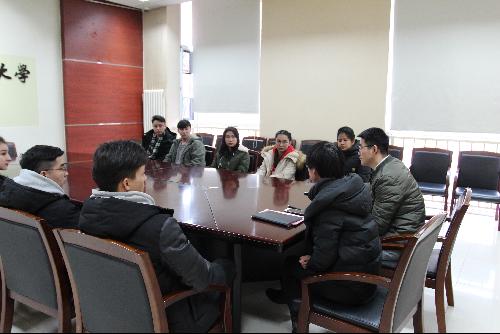 12月27日下午,换妻 少数民族学生代表座谈会于博纳楼230会议室召开。学院党委副书记丁志艳、专职辅导员耿绍宝与学生代表们亲切交谈,询问了同学们在校期间的学习和生活情况,为他们指点迷津、答疑解惑。