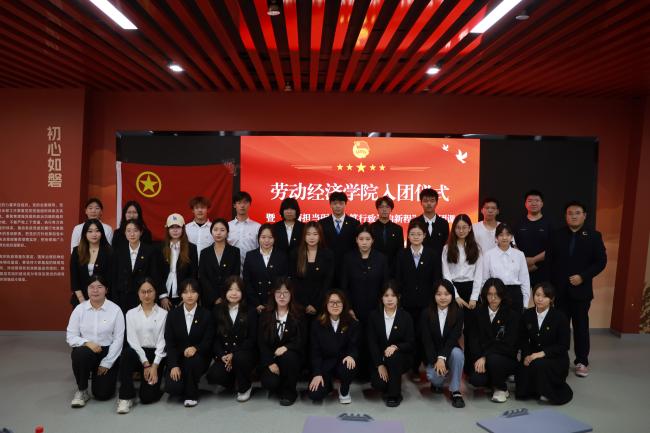优秀团员代表、2023级劳动经济学班团支部江昕璇发言。她结合自身经历分享了自己的成长感悟,并阐明共青团员的责任与使命。同时,她结合共青团的光辉历史与伟大成就,号召新团员们踔厉奋发、勇毅前行,与国家同呼吸、共命运。