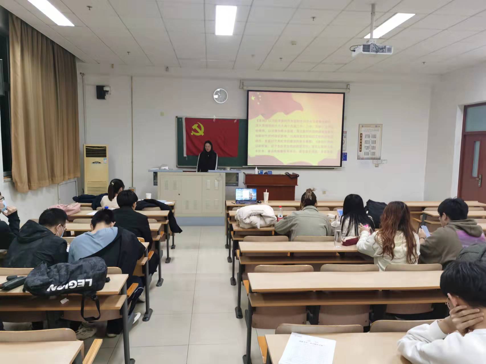 2021年11月15日晚,学院党委副书记孙庆福应邀为党员发展对象讲授题为“党的十九届六中全会彰显中国共产党的底蕴、底色、底气”的主题党课,专题党课于博远楼1号会议室开讲。