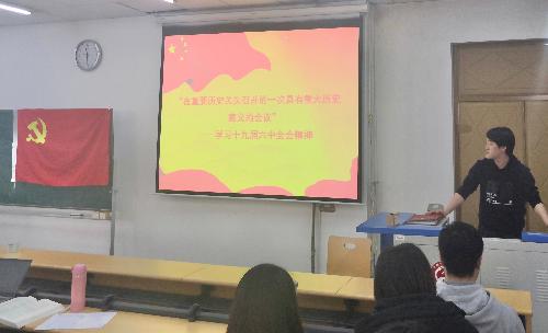 学院各党支部响应学院党委号召陆续开展党的十九届六中全会学习工作。21级研究生党支部组织委员张博轩组织支部学习全会精神,他从党的历史、奋斗百年所取得的成就、我国经济快速发展的经验等角度进行全会的精神讲解。目前正值“两个百年”的重要交汇期,面对新时代新使命,在以习近平同志为核心的党中央坚强领导下,我们要把这些宝贵的经验坚持好、运用好、发扬好。作为一名党员,加强高质量的党史学习是我们的必修课。在此基础上,如何理解党的重大会议精神及其诞生的重要成果,也是每一位党员生命中不可或缺的命题。