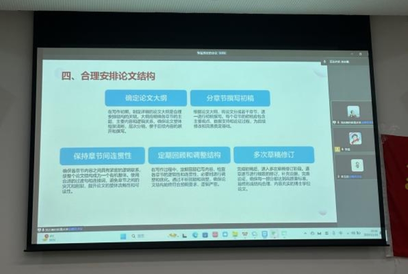 经验分享结束后,大家就自己在论文写作和未来规划方面的疑惑与学姐们进行交流。张猛在总结时,首先对党员反哺支部的行为表示感谢,并代表党支部送上诚挚的毕业祝福,强调“我为群众办实事”是博士生党支部的一个品牌活动,未来将持续围绕学术论文写作与发表、求职就业经验分享、科研能力训练等主题开展活动交流,通过党建赋能科研,助力学术能力提升。