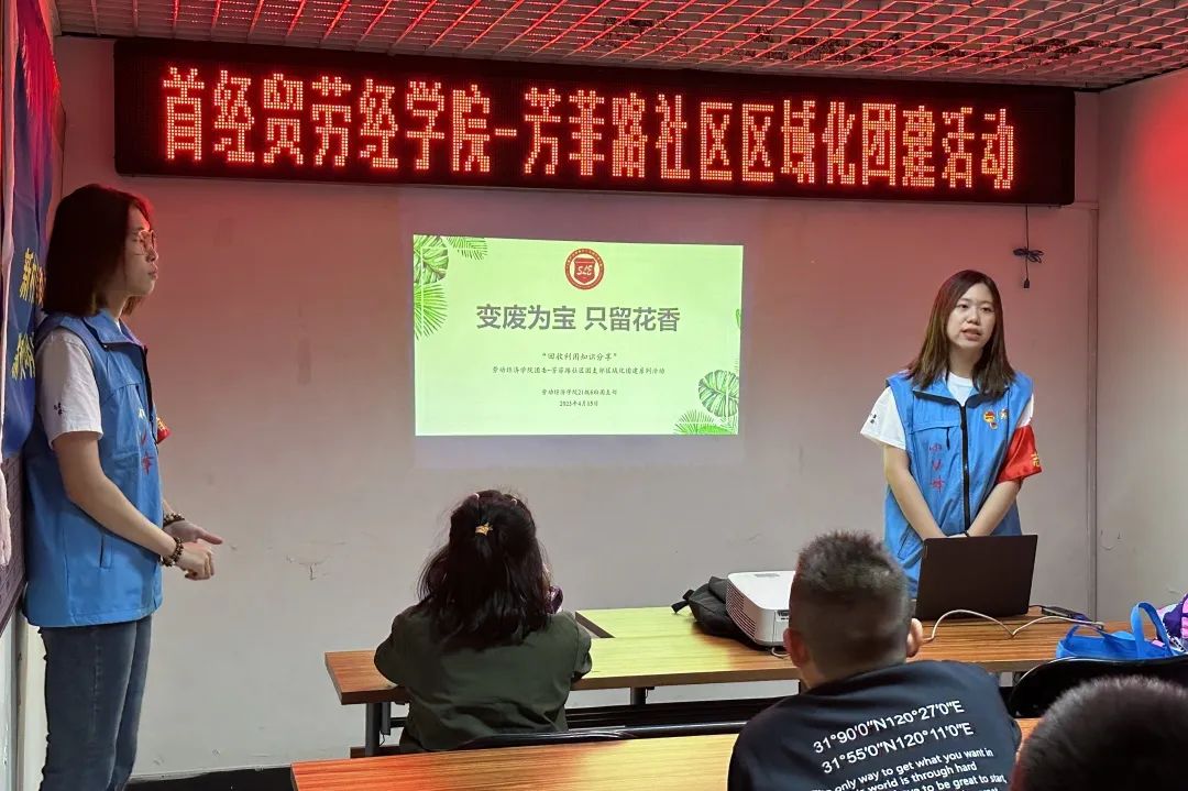 为深入学习宣传贯彻党的二十大精神,换妻 分团委聚焦团员青年成长成才需求,积极发挥实践育人机制,加强区域联建,赓续传承红色基因,建设劳动特色实践项目。4月15日,换妻 分团委与芳菲路社区团支部共同开展“变废为宝,只留花香”主题区域化团建活动,组织社区青少年儿童开展变废为宝知识科普,带领小朋友们制作易拉罐巧变花瓶手工活动,同时亲身投入到社区环卫工作中,切身感受到保护环境和节约资源的重要性。