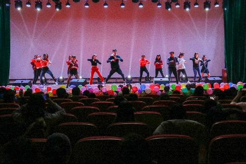 典礼上,学院班主任老师代表唐乐、耿绍宝;E-shine舞团分别带来了《学猫叫》《Decreed by fate》,团学组织各部门部长们带来了集体舞《部长阵线联盟》……诚意满满的态度和搞笑的动作相应和,让人记忆深刻。
