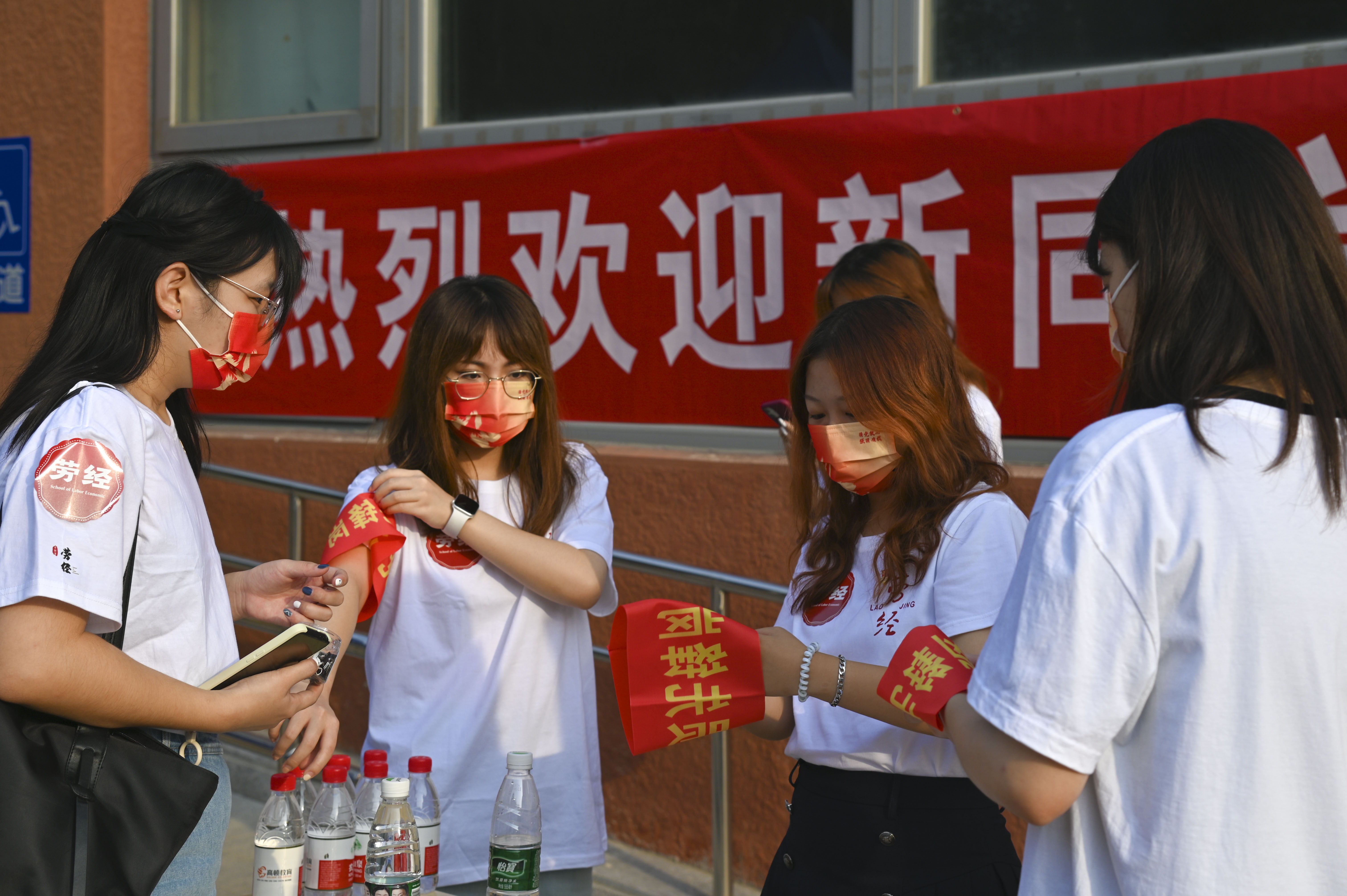 为避免大规模人员聚集,家长不能进入校园,学长学姐们积极承担起为“新面孔”服务的重任!他们身穿院服,佩戴劳经定制口罩,在各个岗位忙碌着。大门志愿者负责接待引导,宿舍志愿者负责办理入住及搬运行李,报到处志愿者负责帮助新生完成注册手续……各位迎新工作人员及时引导,积极热情,服务周到,校园里随处可见忙碌的身影,大家井然有序。