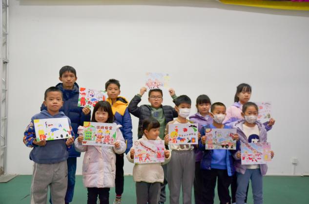 DIY手工品实践环节,志愿者组织小朋友拿起画纸和画笔,耐心指导他们书写消防宣传标语,引导小朋友们认真思考、领悟消防安全的重要性,深入了解火灾预防和应对的基本常识,树立牢固正确的安全意识。