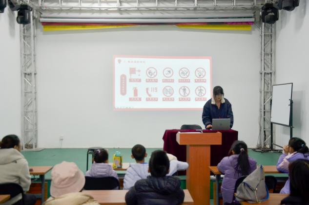 2023级劳动与社会保障班石滢雅向青少年介绍消防的基本概况。她充分带动小朋友们学习消防知识的积极性,让小朋友们深刻了解到消防安全绝不仅是一句口号,而是守护生命与财产的坚固盾牌,关乎着每一个家庭的幸福。灭火器、消火栓的正确使用,火灾初期的及时扑救,逃生路线的精准规划,都能在关键时刻为生命开辟出一条“绿色通道”。