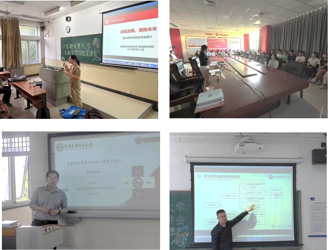 6月5日,劳经学院教师代表肖周燕、刘俐伶、雷晓天、张书博和杨之旭分别赴河北金融学院的五个二级学院进行宣讲。宣讲团为河北金融学院师生介绍劳经学院的历史沿革、机构设置、办学规模与学科层次,对劳经学院硕士生的培养计划、课程体系、培养成果与就业方向进行了详细介绍,同时就奖助政策、招生计划及考试内容作了系统说明,帮助同学们全面了解劳经学院的特色优势、录取要求及人才培养体系。互动交流环节,各系教师对同学们提出的问题进行了针对性解答,获得河北金融学院师生一致好评。