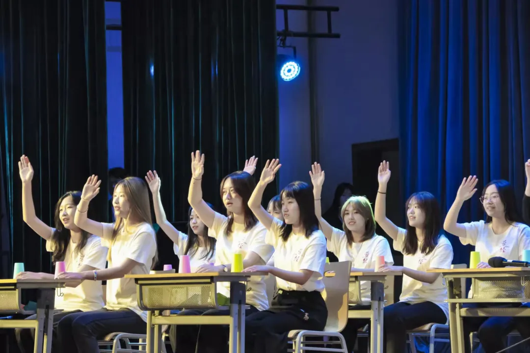 接下来是由21级劳经3班与4班合作给大家带来的节目《稻香》,它由杯子舞和合唱两个部分组成,舞台的左侧是拍打节拍的杯子舞表演,右侧则是青涩朦胧的歌曲合唱,节目整体呈现良好,而间奏的rap更是成为了节目的点睛之笔,不仅活跃了现场的气氛,同时也唤起了我们对家乡的记忆——“回家吧,回到最初的美好!"