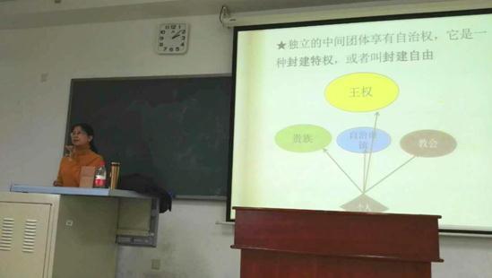 11月2日下午,换妻 在我校博学楼506举办了第43期通识教育讲座。主讲人为首都师范大学历史学院倪玉珍副教授,主题为“平等和自由的并行与悖论——托克维尔论现代社会与现代个体。