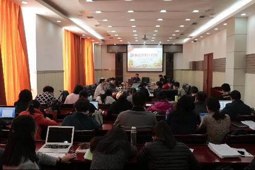 学院党委书记王明会从“大会的重要意义”“十大以来的重要成就”“十九大报告内容解读”和“不忘初心 做合格党员”四个方面带领全体教师回顾了十九大报告,对“社会主要矛盾变化”“习近平新时代中国特色社会主义思想”“两个阶段”以及“立德树人”等关键词做了重点解读。