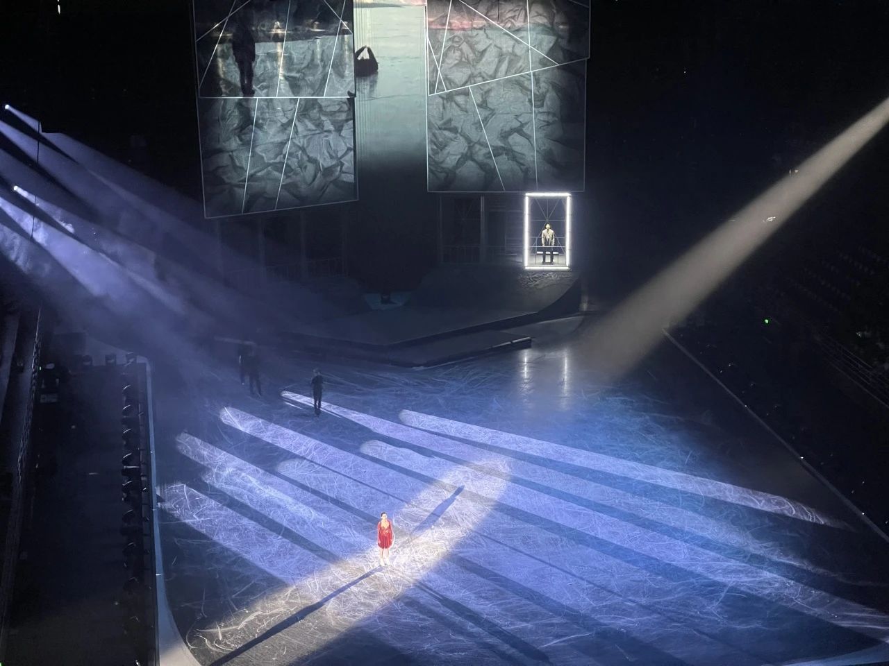冰上舞剧《踏冰逐梦》由北京市滑冰协会指导,由世界冠军张丹、张昊领衔全部花滑国家队员主演,是中国首部以花样滑冰为主要表演形式的原创舞剧。该剧讲述了花滑女孩陆溪云从边陲小城,和父亲、队友一路披荆斩棘,最终站在奥运最高领奖台的故事。剧中陆溪云在亲情、爱情、物欲、家国梦想中的傲骨抉择,铺展出代代冰雪健儿“不负少年志 燃梦冰雪间”、前赴后继将中国冬季运动推上世界舞台之巅的壮美诗篇。