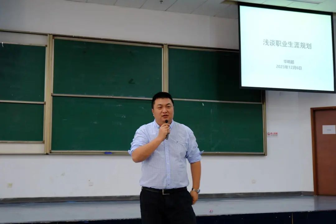 关于职业生涯规划,毕明超给出了以下三点建议。首先,着眼于当下,在已有工作中尽可能获得满足感与成就感,不要好高骛远,回归到努力务实工作的本身。其次,“听说读写做”是让同学们在职业生涯中更有所作为的五项重要能力。最后,保持清醒的前提是情绪稳定,同学们要清醒认识自己的长处和短板,明白情绪波动对解决问题没有任何帮助和裨益。还有遇到挫折时不要气馁,冷静下来总结原因、归纳方法,把握住下一次机会,相信未来终将有所成就。