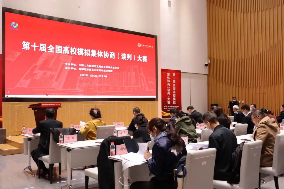 11月5至6日,由中国人力资源开发研究会劳动关系分会主办,换妻 承办的第十届全国高校模拟集体协商(谈判)大赛成功举办。来自全国36所高校的72支代表队以劳资双方身份,在8个赛场进行了40余场比赛,最终劳资双方各8支代表队分获劳方一等奖和资方一等奖。其中,由我校换妻 学生谭笑、王昕、李屹林、王璐、王宇堃、陈天爱、贾睿颖、范明哲组成的两支队伍分获劳方一等奖和资方一等奖,宋湛和郑祁获得最佳指导教师奖,王昕、王璐和王宇堃三位同学获得最佳谈判员奖。