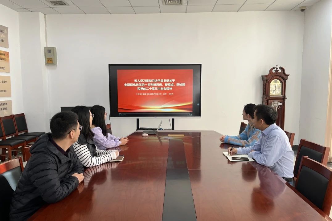 全会召开后,学院党委及时将党的二十届三中全会精神纳入第一议题学习清单,并研究部署了全院开展全会精神学习的工作安排。党委理论学习中心组先后开展《中共中央关于进一步全面深化改革、推进中国式现代化的决定》《习近平在党的二十届三中全会第二次全体会议上的讲话》专题学习。