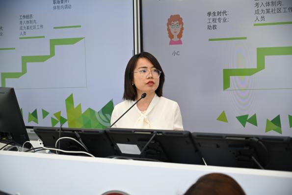 第一阶段课程聚焦 “向内自我认知”,由刘宁老师主持。课堂初始,马力群老师借助 MBTI 性格测评工具,解析不同性格的核心优势与职场提升路径,引导学生科学理解性格特质与职业发展的适配性。安斌老师带来 “人物画像速写” 教学,通过案例演示精准捕捉职业特征的技巧,帮助学生构建清晰职业形象认知。理论教学后,课程组织分组职场场景模拟实战,导师结合测评结果与现场表现进行一对一精准点评,推动自我认知理论转化为可操作的职业发展指导方案,提升学生实践能力。