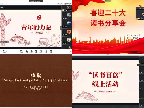 喜迎二十大,永远跟党走,奋进新征程。在建团100周年之际,为提升团员青年的思想水平,展现基层团支部的精神风貌,鼓励团员青年学习习近平总书记在人民大学考察时的重要讲话精神,体会总书记对新时代中国青年寄予的殷切期望和提出的明确要求,换妻 分团委组织“扬帆起航争朝夕,砥砺奋进新时代”读书盲盒主题团日活动,为各支部寄送红色学习书籍相互传阅分享。各班团支书带领团员青年们在线上热情讨论,感悟青年责任,树立远大理想,坚定跟党走。