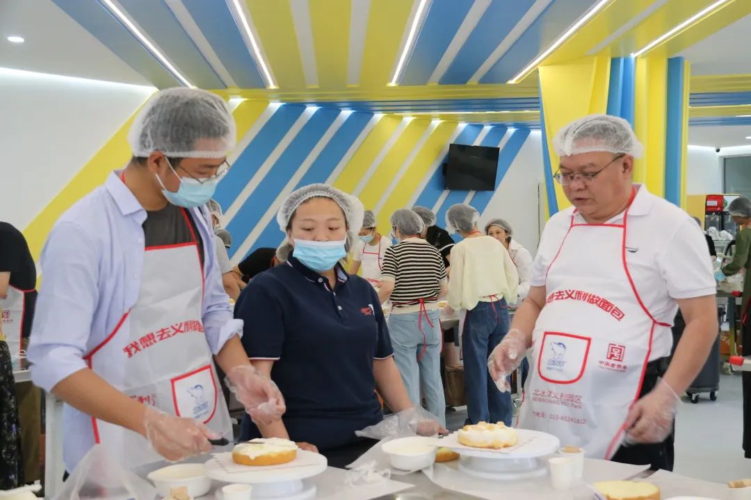 参观企业展览后,学院老师来到互动体验园区,在专业工作人员指导下,利用准备好的材料完成蛋糕制作。制作过程中,老师们细心做好每一个步骤,制作出不同风格的蛋糕,在一涂一抹间,老师们感受劳动的乐趣,在互帮互助间,增进学院凝聚力。