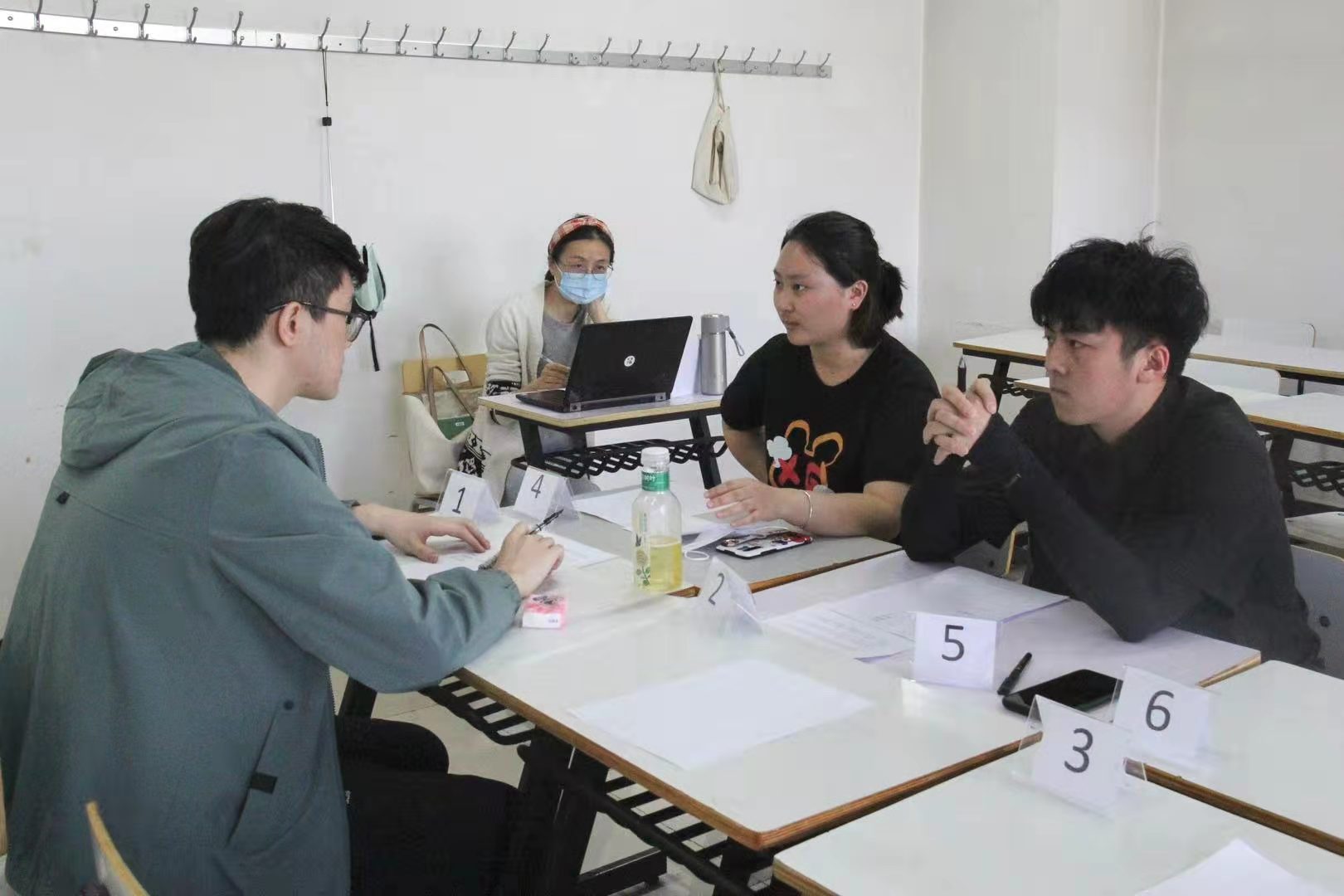 比赛中,劳动关系专业和人力资源管理专业教师担任评委。宋湛、张杉杉、雷晓天、毛畅果、盛龙飞以及常成老师分别担任分赛场“观察员”,仔细观察并记录每一位选手的比赛表现。同学们在比赛中状态良好,积极思考并展示自己。