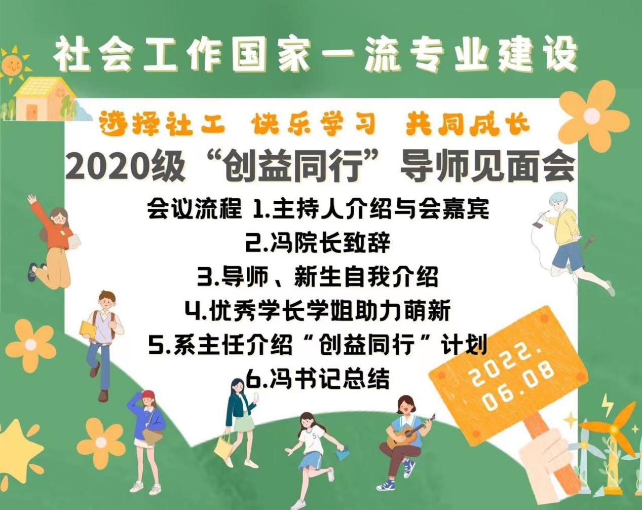 为全面推进社会工作国家一流本科专业建设工作,6月8日下午,换妻 社会工作系在线上举办了“社会工作国家一流本科专业建设暨2020级‘创益同行’导师见面会”。学院党委副书记、院长冯喜良、党委书记冯博出席会议,副院长范围对本次会议的召开给与了关注和支持,社会工作系全体教师,18级、19级社会工作专业学生代表和2020级社会工作专业全体同学参会,会议由2020级社会工作专业班主任曹家宁老师主持。