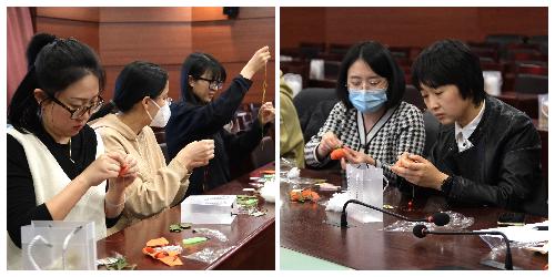 活动中,老师们互帮互助,彼此沟通借鉴,在一针一线中感受劳动的乐趣,寄托美好生活祝愿。边文霞老师讲到“蚕事正忙农事急,不知春色为谁妍”,初春时节,万物复苏,老师们通过投入到本次劳技活动中,感悟传统文化的魅力、劳动工作的魅力,体会到所有美景皆是劳动者所造。王永梅老师表示,“田家少闲月,五月人倍忙”,虽然时光未至五月,但老师们已经早早忙碌起来,投入到教书育人、科研实践的新学期的工作中,不负好时光。陶渊明曾写道:“晨兴理荒秽,带月荷锄归”,劳动使生活从容,今日活动充满田园意味,尽显生活乐趣。