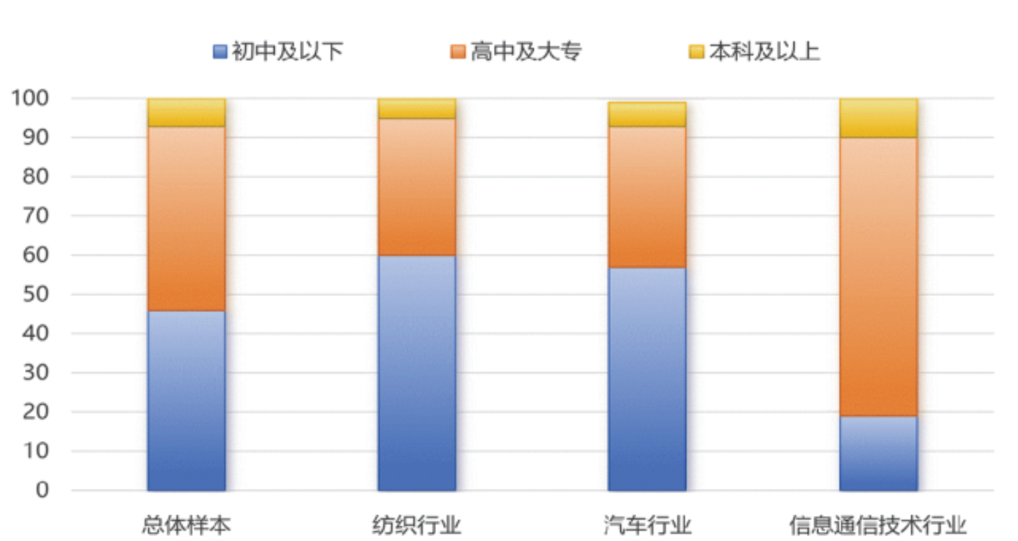 调研结果显示,受访女工整体学历偏低,培训机会有限且针对性不足,晋升渠道相对狭窄,职业发展规划意识较弱。多数女性承担主要家庭照护责任,托育支持不足加剧职业中断风险。性别与年龄歧视在部分行业中仍然存在,女性在企业决策中的参与度和话语权有限。同时,政策执行在国有企业与部分中小企业之间存在差异,流动女工和残障女性面临更为突出的交叉性困境。