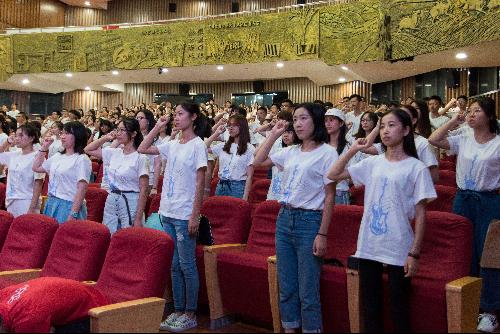 新生代表林晓雪带领全体新生宣誓,“……感恩母校、感恩社会、感恩国家,致力于祖国民族的事业兴盛,实现价值,回报师长。乐学、爱业、报国!”的庄严誓词响彻琢玉讲堂。