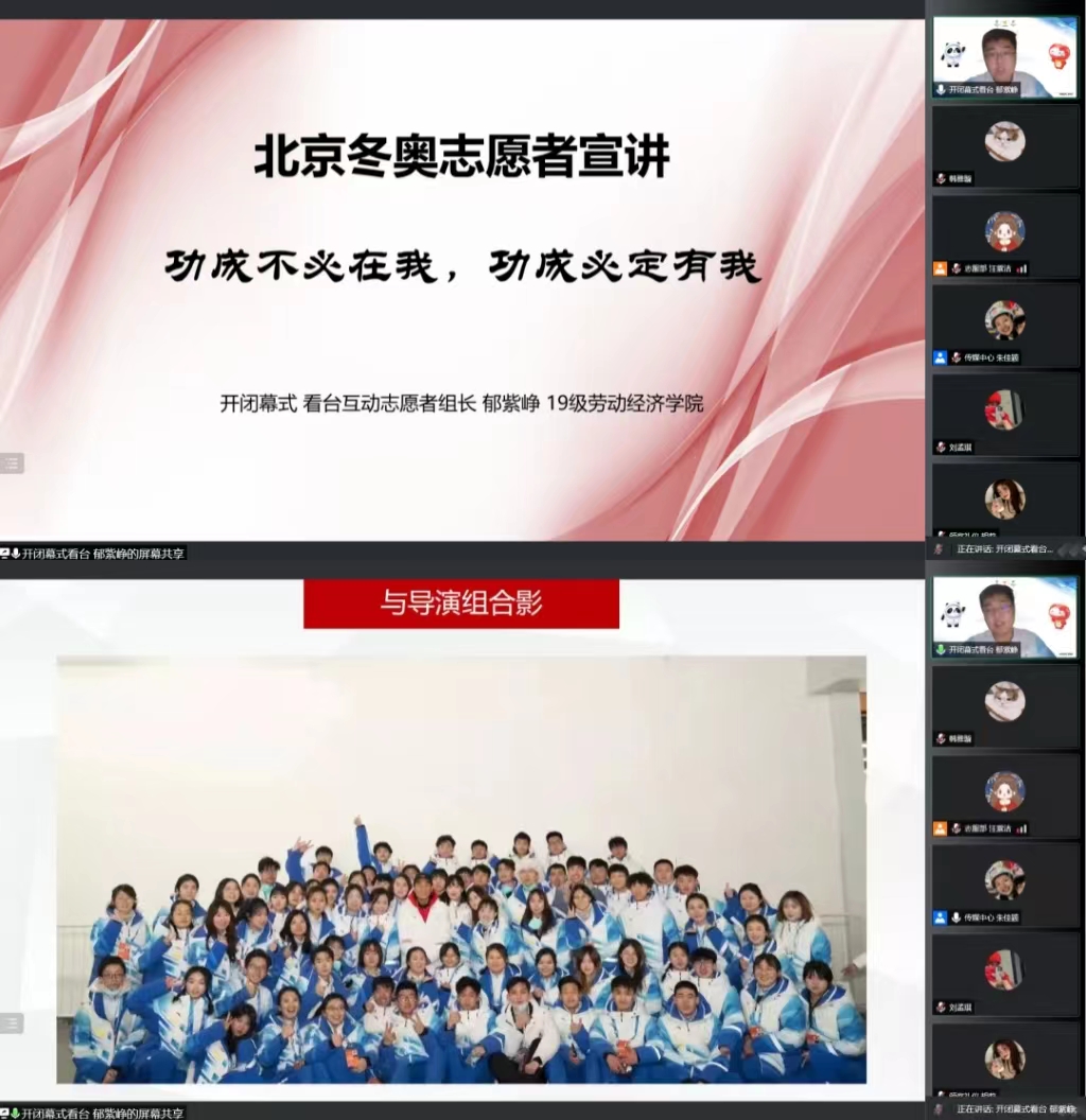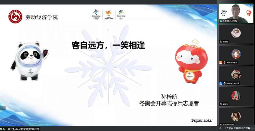 2022年5月14日,换妻 换妻 青春心向党,奋进新征程“微火成炬”冬奥精神主题分享会在线上腾讯会议顺利开展。9位来自各个领域的冬奥志愿者对自己在志愿服务中的独特故事和切身感悟进行分享,展现出劳经学子在冬奥这堂思政大课中的精神风貌,以青春之名,向劳经学子传递强烈的爱国热情和政治担当。