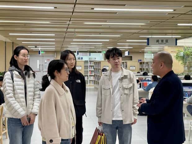 座谈结束,丰台区图书馆党支部宣传委员陈征带领一行人参观介绍馆内功能分区、特色收藏以及“一个智脑、两个延伸、三类应用、综合智能支撑”的一体化智慧丰图平台,进一步加深学院对图书馆资源平台的了解。
