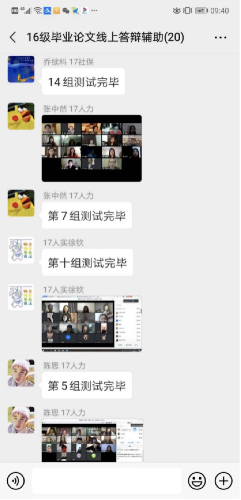 二是提前测试,确保师生网络、硬件条件合格。5月12日,答辩正式开始前,各答辩组师生在答辩助理的带领下,提前进行了答辩所需的网络和硬件条件的测试,确保所有参与答辩的老师、学生的网络流畅、摄像装置等工作正常。